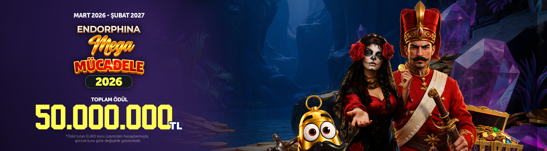 Endorphina oyunlarında düzenlenen Mega Mücadele 2026 turnuvası, Mart 2026 – Şubat 2027 tarihleri arasında gerçekleşecektir ve toplam ödülü 50.000.000 TL’dir.